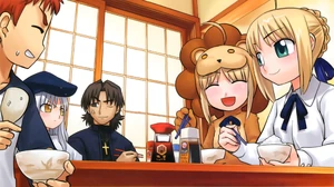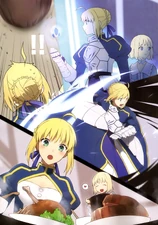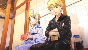 She is shown to have a voracious appetite, finishing large servings of rice within one minute. Although she can normally eat anything, Shirou's food education is what awoke her gourmet spirit.[22] She originally did not appreciate modern food, as she doesn't actually need to eat as a Servant, and because she had believed that all food was simple. She had very bad experiences with the food in her time, due to being limited to meals like large quantities of potatoes, vinegar, bread, and ale, or even at times simply eating vegetables alone in times of need.[23] She did not concern herself with food much in her life and allowed her cooks to do as they wished. She felt those dishes were unrefined, although she was not displeased by them. She shudders at the thought of eating the food of her era once introduced to Shirou's cooking. She thought it had been made to suit the tastes of the knights, because they acknowledged it as tasting good, but they simply were unable to say it was bad to the King's face.[24] Gawain was an exception, and enjoyed the meals, not noticing the others' distaste for it.