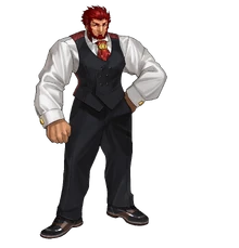 Alexander the Great, the King of Conquerors (征服王, Seifuku-Ō?), summoned as the adult aspect known by the name Iskandar (イスカンダル, Isukandaru?) rather than the youthful aspect known as Alexander. Known by many names, Alexander, Iskandar, Alexandros, Dhul-Qarnayn, and "he of the two horns," he was the young prince of the small kingdom of Macedonia in the 4th Century BC. Due to the influence of his mother Olympias, as a child he indulged in many tales of legendary heroes and came to believe he was the son of Zeus,[5] despite there being an absence of clear evidence.[1][12][13] He was known as a "peerless pretty boy" who was noticed by many sages, such as AristotleWP, as a prodigy. During this period of his life, he spent much of his time training as a soldier, studying philosophy and political sciences, and reading great legends. While he bloomed with many talents, he approved of every and all possibilities, able to be called the "personification of possibilities" itself.[12] He possessed a close friend, an "amazing man" who truly began to show his talents after Alexander's death, who would often drag him around rambunctiously in a manner to his later encounter with Taiga Fujimura, expanding Alexander's horizons thanks to his actions.[14] Though considered beautiful, his self-recognition in being the child of Zeus granted him strength, reducing his boyish looks over time.[12] He later encountered the Gordian KnotWP, cleaving the rope with his sword and taking the divine bulls offered to Zeus by King GordiusWP as his own for use with his chariot.[13]